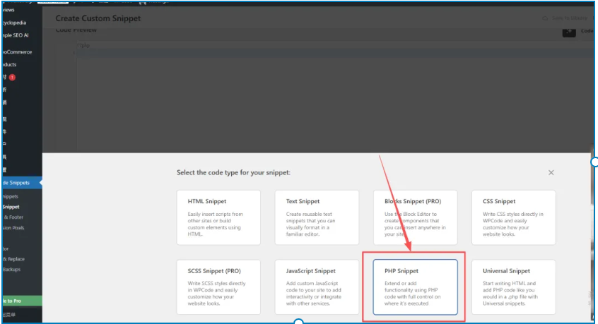 选择类型:选择 “PHP Snippet”。