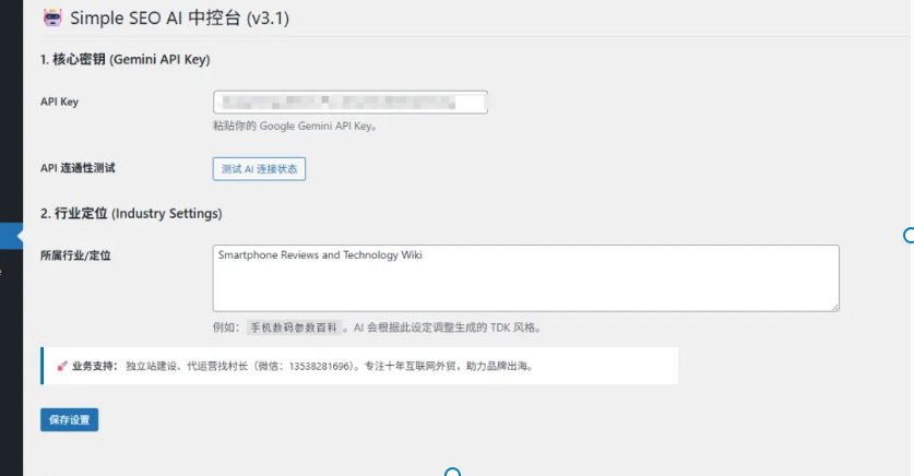 由村长(拥有十年互联网外贸深耕经验)亲自打磨的 Simple Custom SEO (v3.1 行业调试版) 正是为了解决这一痛点而生。它不再是一个简单的代码片段,而是一个集成了 Google Gemini AI 核心算力的自动化 SEO 工作站。